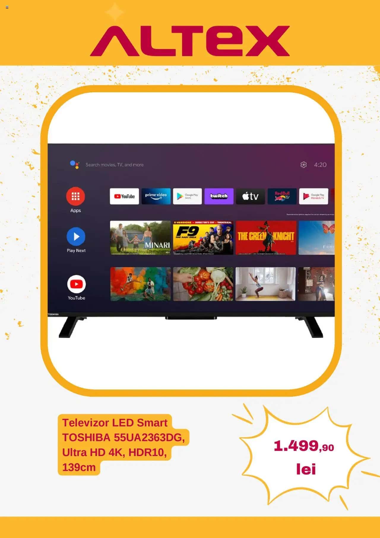 Răsfoiți acest catalog Altex actual în perioada 08.05.2025 - 14.05.2025 pentru a vedea ultimele oferte. În paginile 7 ale revistei online veți găsi cele mai recente cataloage și oferte din categoria Electronică și electrocasnice.