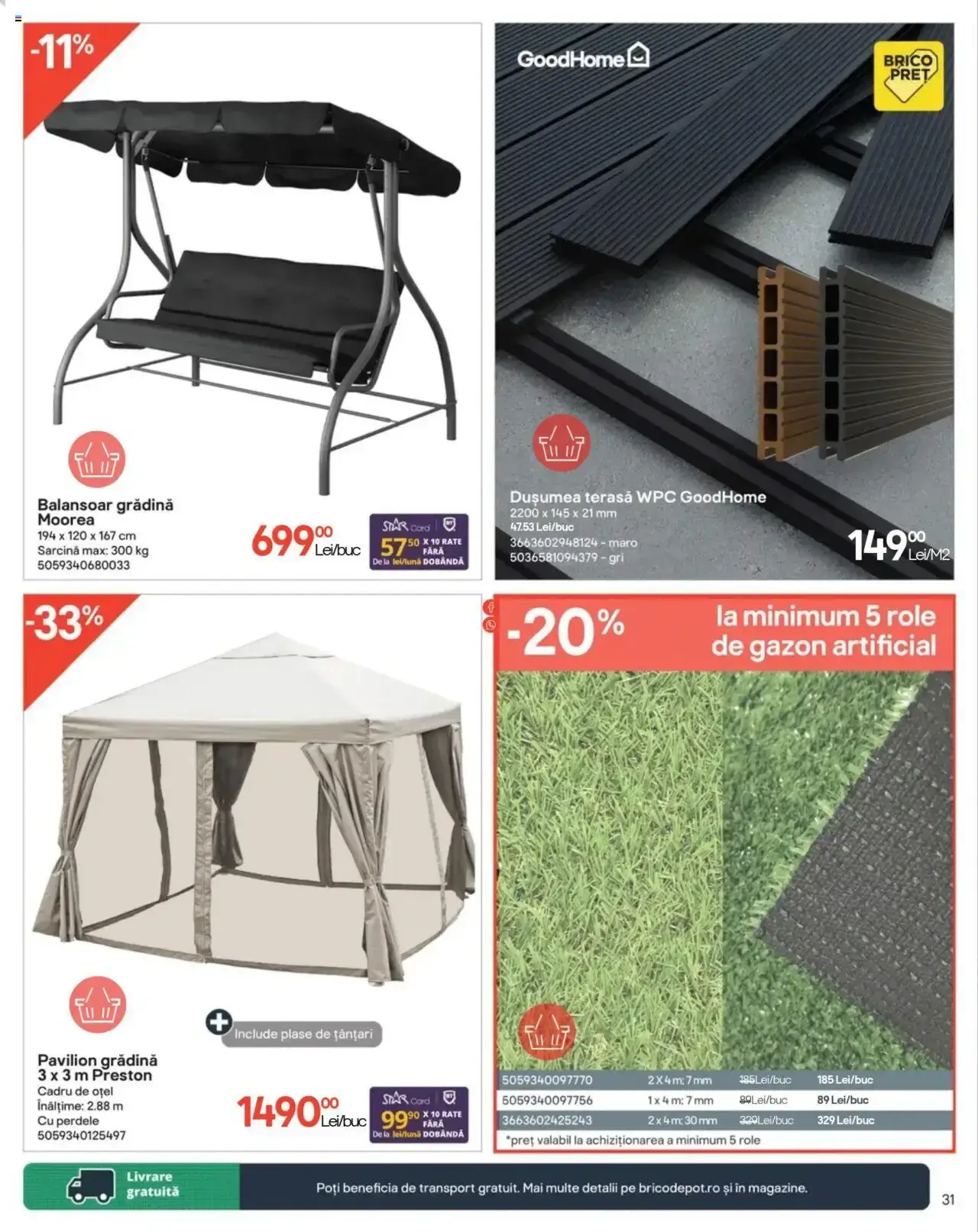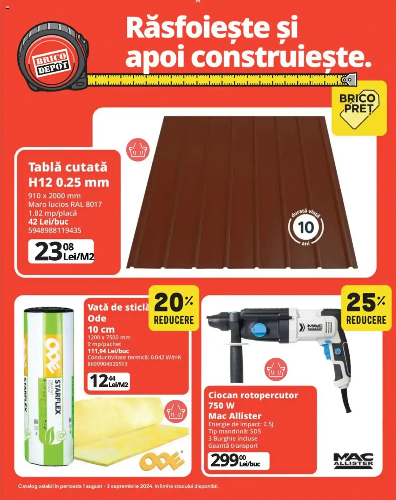Răsfoiți acest catalog Brico Depot actual în perioada 01.08.2024 - 03.09.2024 pentru a vedea ultimele oferte. În paginile 34 ale revistei online veți găsi cele mai recente cataloage și oferte din categoria Bricolaj.