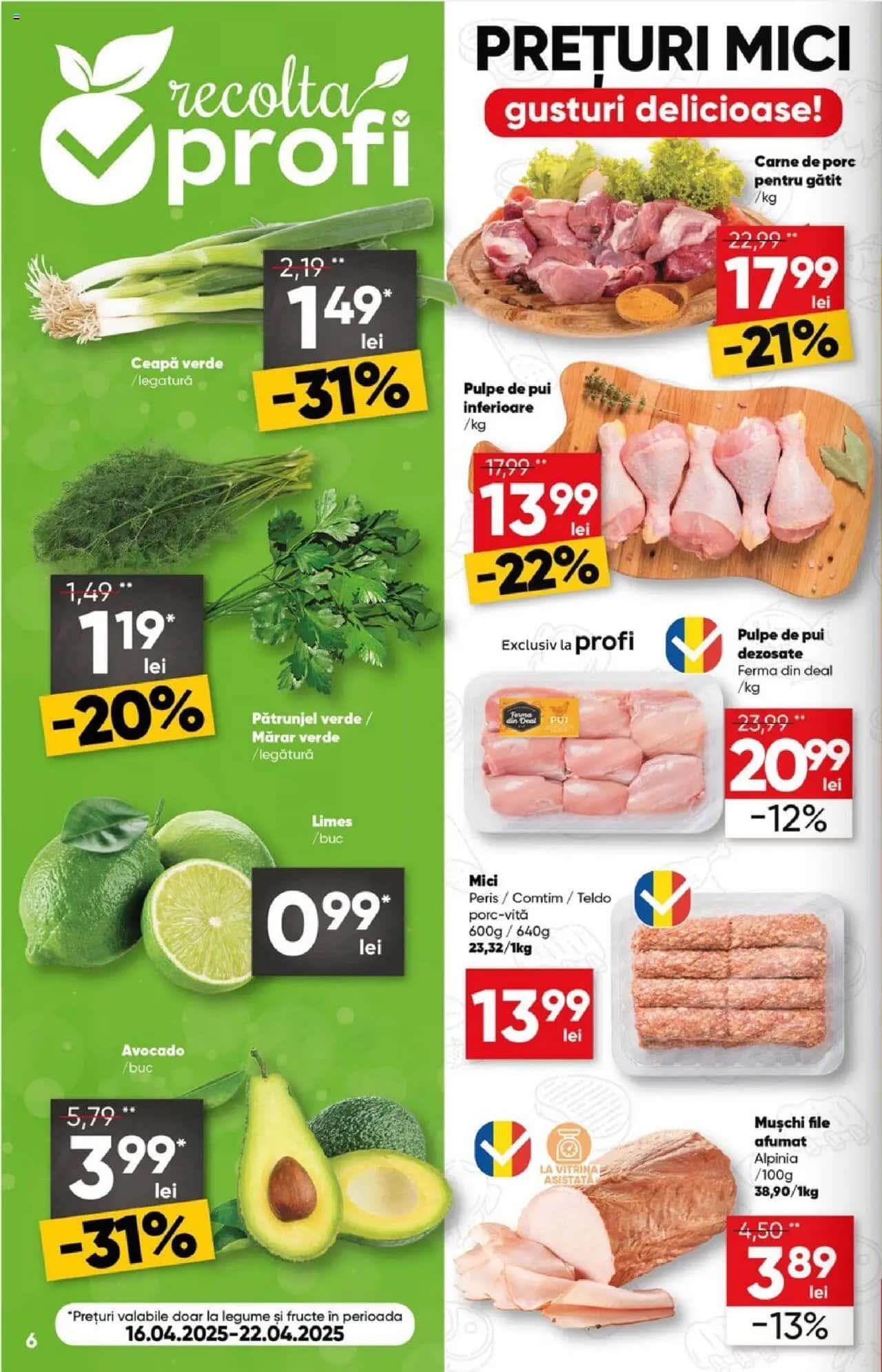 Răsfoiți acest catalog Profi actual în perioada 16.04.2025 - 29.04.2025 pentru a vedea ultimele oferte. În paginile 16 ale revistei online veți găsi cele mai recente cataloage și oferte din categoria Supermarketuri.