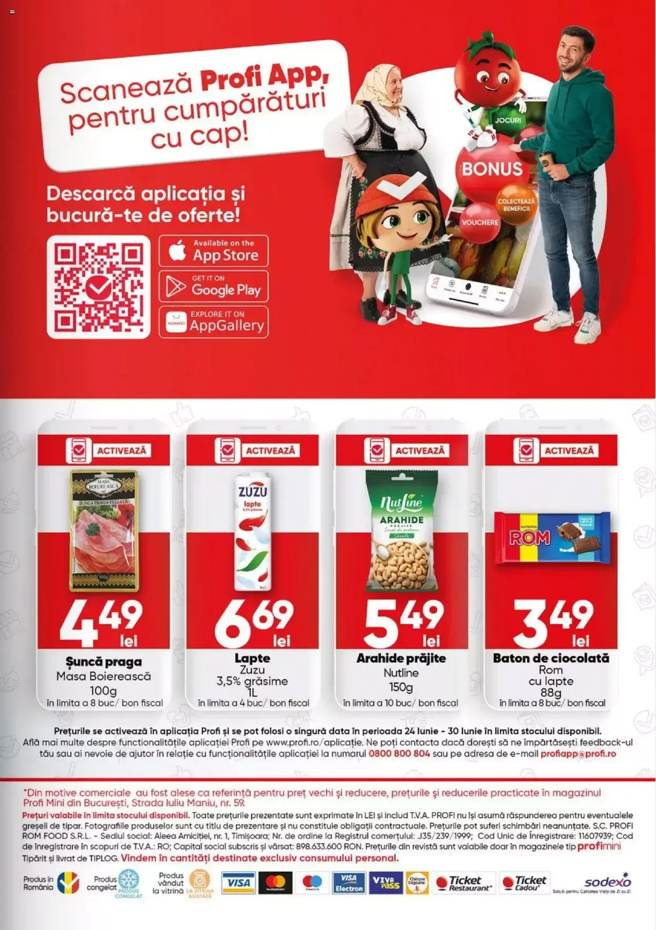 Răsfoiți acest catalog Profi actual în perioada 26.06.2024 - 23.07.2024 pentru a vedea ultimele oferte. În paginile 7 ale revistei online veți găsi cele mai recente cataloage și oferte din categoria Supermarketuri.