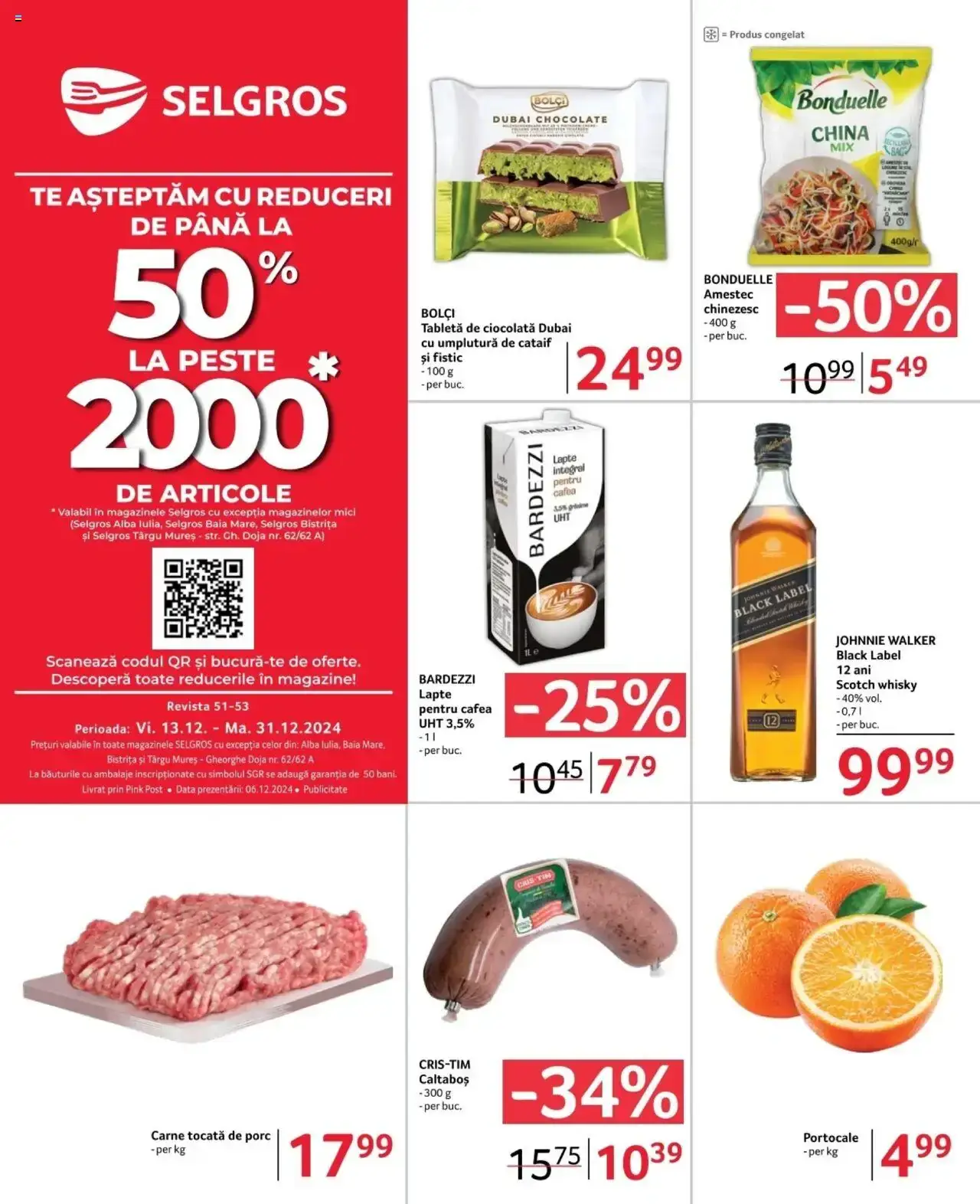 Răsfoiți acest catalog Selgros actual în perioada 13.12.2024 - 31.12.2024 pentru a vedea ultimele oferte. În paginile 18 ale revistei online veți găsi cele mai recente cataloage și oferte din categoria Supermarketuri. Acest catalog Selgros oferă reduceri la peste 151 produse la reducere Selgros și astfel beneficiați de cea mai bună ofertă la lucrurile pe care le cumpărați! În plianta actuală veți găsi Reduceri, oferte și prețuri la produse Carne, Cafea, Bonduelle, carne tocată, carne tocată de porc, fistic, lapte, portocale, tabletă, whisky. Catalogul Selgros oferă multe alte promoții la mărfuri lista o puteți găsi mai jos.