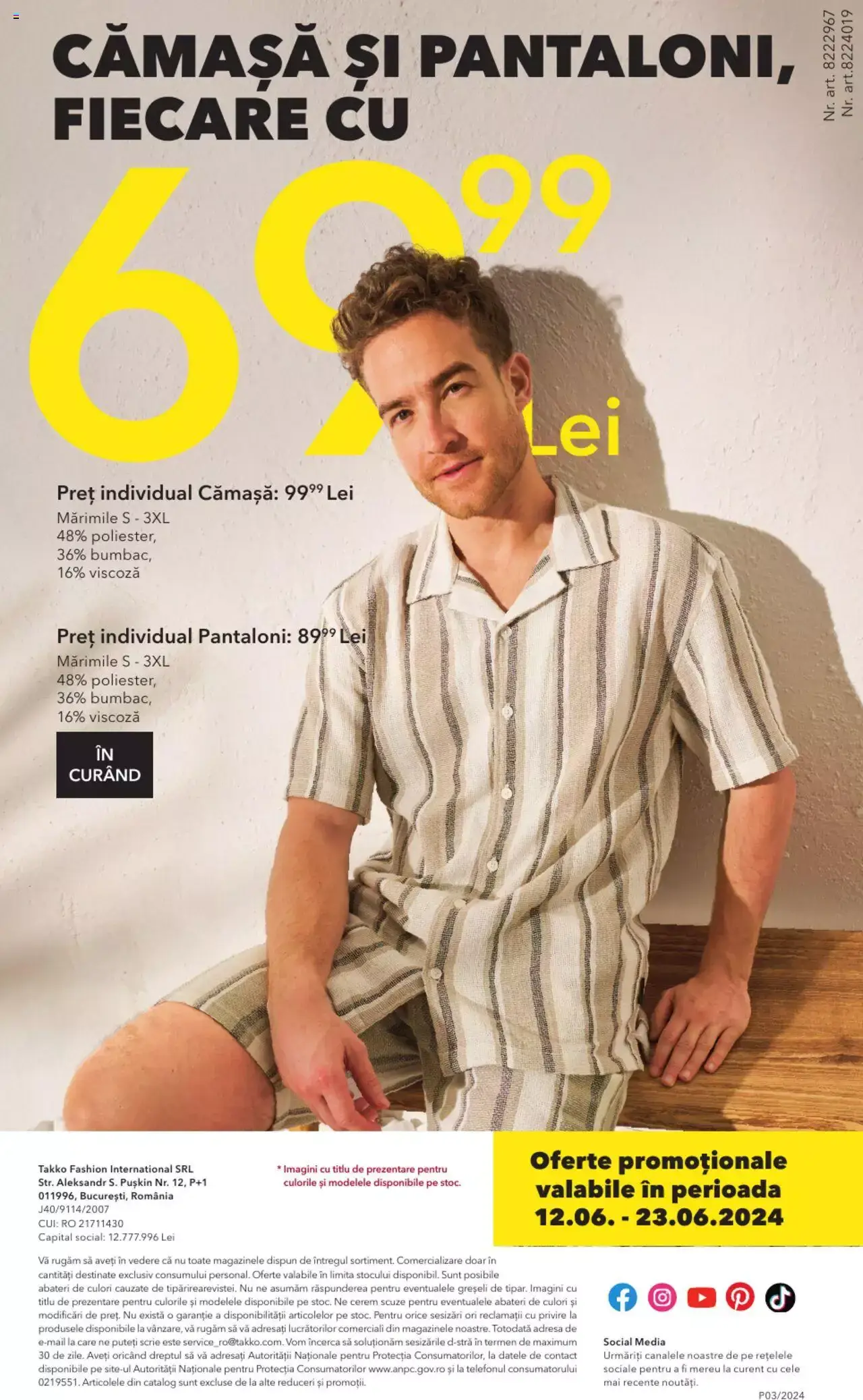 Răsfoiți acest catalog Takko actual în perioada 12.06.2024 - 23.06.2024 pentru a vedea ultimele oferte. În paginile 10 ale revistei online veți găsi cele mai recente cataloage și oferte din categoria Îmbrăcăminte și încălțăminte.
